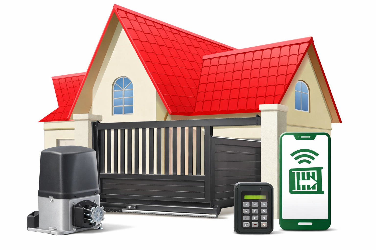 Instalação, venda e manutenção de portões eletrônicos e inteligentes, com abertura via controle remoto ou aplicativo no celular, sensores de segurança e sistemas modernos de automação.